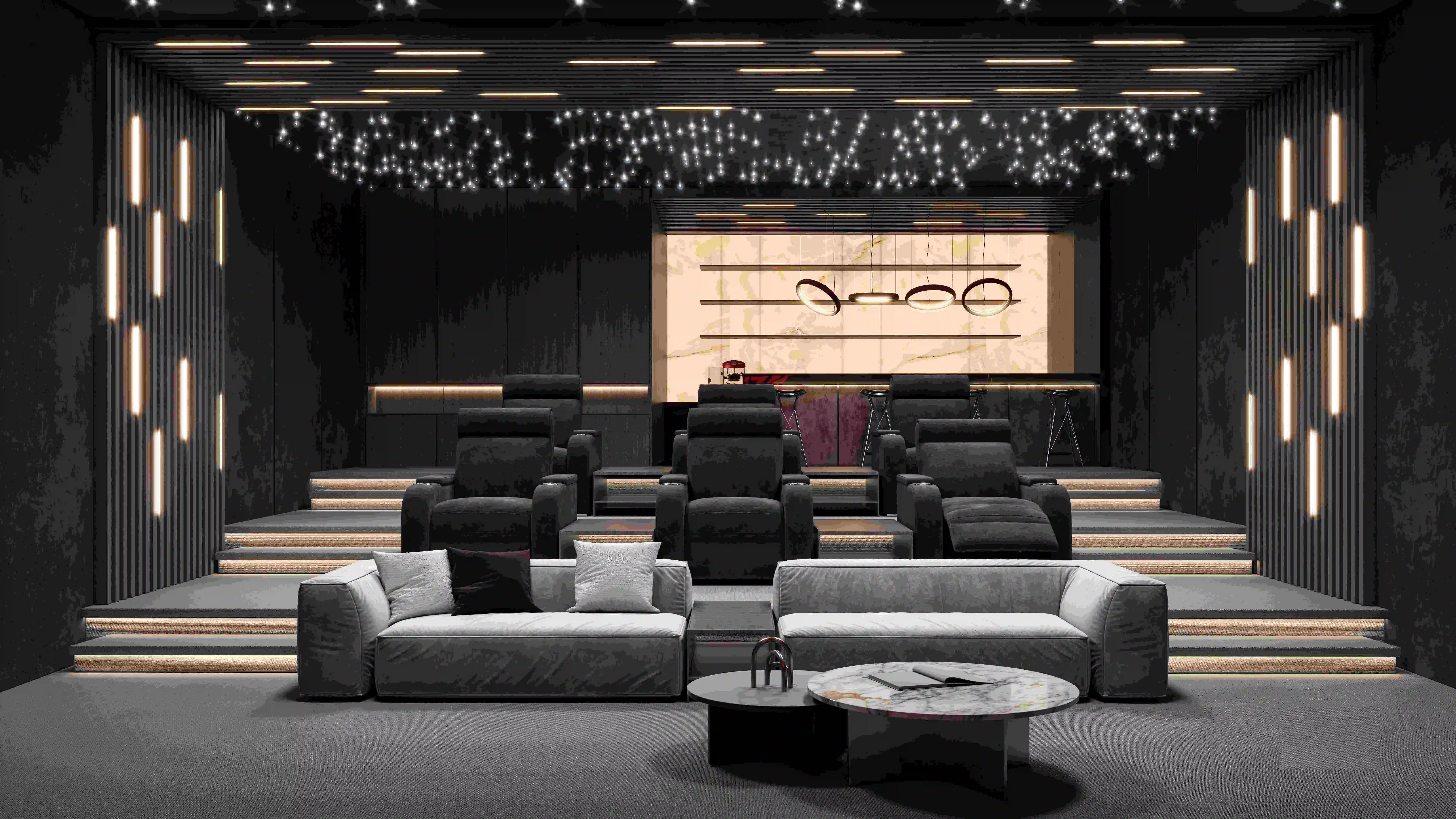 Set the mood for your home cinema with customizable lighting solutions. Install dimmable LED lights or smart lighting systems that allow you to adjust brightness and color temperature to match the mood of your movie or gaming experience. Consider incorporating ambient lighting features such as starlight ceilings or LED accent lighting for added visual impact.