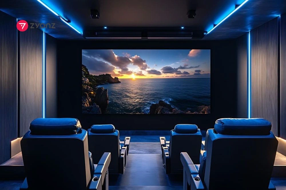 A thoughtfully designed cinema room transforms home entertainment into a premium, immersive experience. More than just a screen and speakers, a cinema room combines intelligent lighting, acoustics, advanced audio-visual systems, and smart automation. With expert planning and execution, spaces can be tailored to deliver both performance and visual elegance-an approach followed by Zyonz Technologies in home cinema design projects across Dubai.